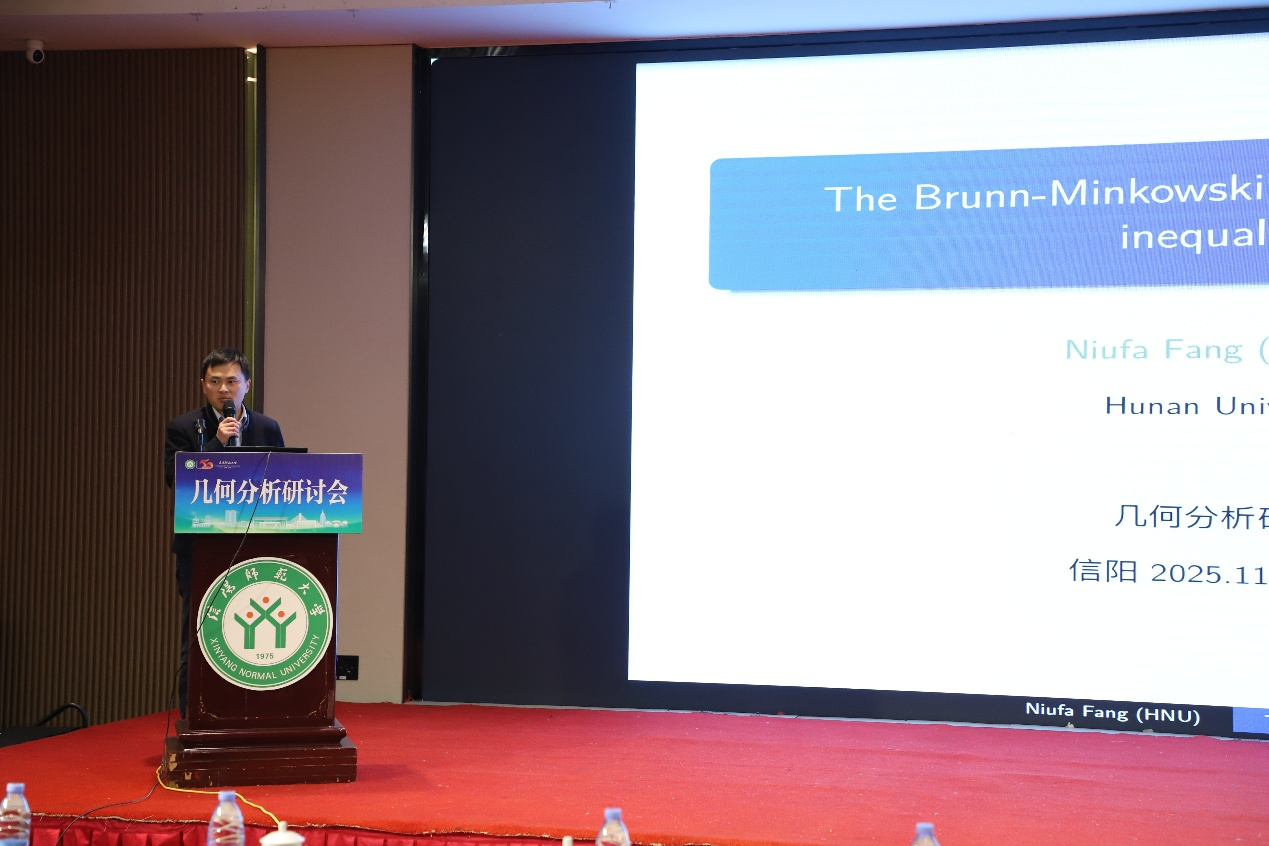 第八场报告由湖南大学方牛发教授主讲,题目为《The Brunn-Minkowski and entropy power inequalities》,由重庆理工大学罗勇教授主持。Brunn-Minkowski 不等式与熵功率不等式分别是凸几何学与信息论中的基础性不等式。M. Costa 与 T. Cover 在 1984 年指出,两者在形式上具有惊人的相似性。方教授在报告中引入一类新的熵功率不等式,其中涵盖了所有 p>1 情形下的 Lp-Brunn-Minkowski 不等式。(初审:曾凡奇,再审:严辉银,终审:韩英波)