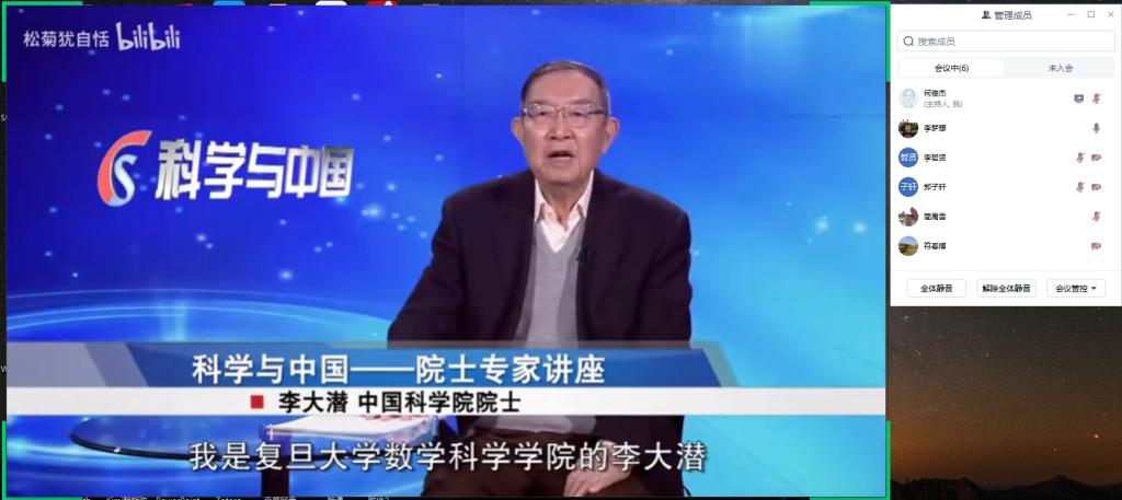 9月14日,指导老师通过腾讯会议播放李大潜院士的报告视频,视频以“数学至善至美”为核心主线。李大潜院士用通俗易懂的表述剖析数学超越公式定理的内在魅力,让学生们跳出解题思维局限,初步领略数学的美学价值。视频播放结束后,指导老师引导学生围绕“生活中的数学美”展开热烈研讨,大家结合校园场景、日常事物分享发现的数学规律,进一步深化了对报告内容的理解。